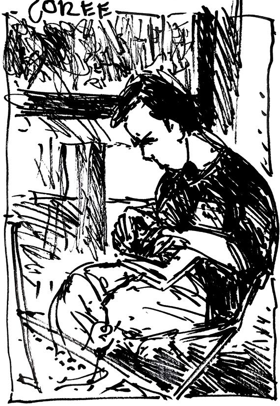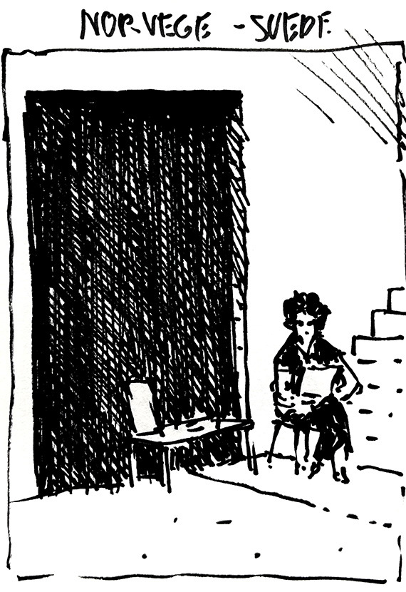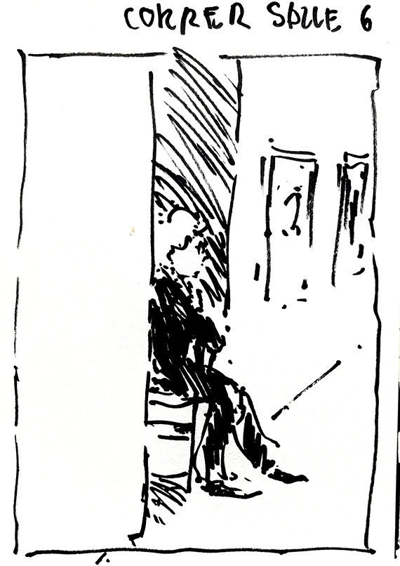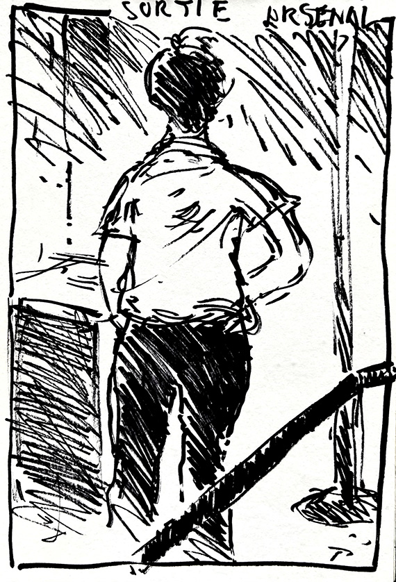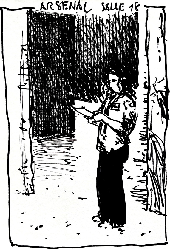 Comme nous avons visité la Biennale d’Art Contemporain. j’ai décidé de croquer, directement au feutre, tous les surveillantes et surveillants des salles d’exposition.