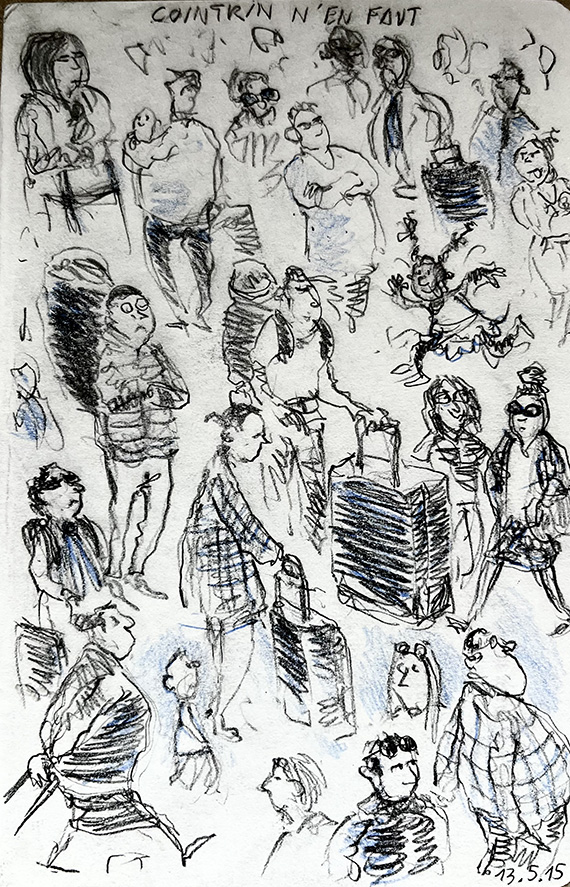 J’aime cette joyeuse ambiance et cela me permet de faire calmement le premier dessin du voyage.